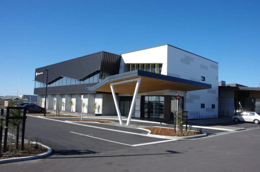 The Centre, designed by The Buchan Group, encompasses an area of 1200 square metres over two levels and is located behind the Stage 2 retail and office buildings at The Landing, Wigram Skies town centre development. The Medical Centre is linked to Stage 1 by a covered walkway between buildings and will be directly accessed off of Skyhawk Road. The materials and colour choices reflect a pallet in keeping with the rest of the town centre development. Subtle angles and folded cantilevered canopies, external walls and glazing recognise the site’s aviation past.