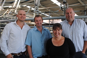 Pictured: Andrew Clayton (General Manager Ngāi Tahu Farming), Philip Colombus (Farm Manager), Jo and Shaun Back (Group Managers).