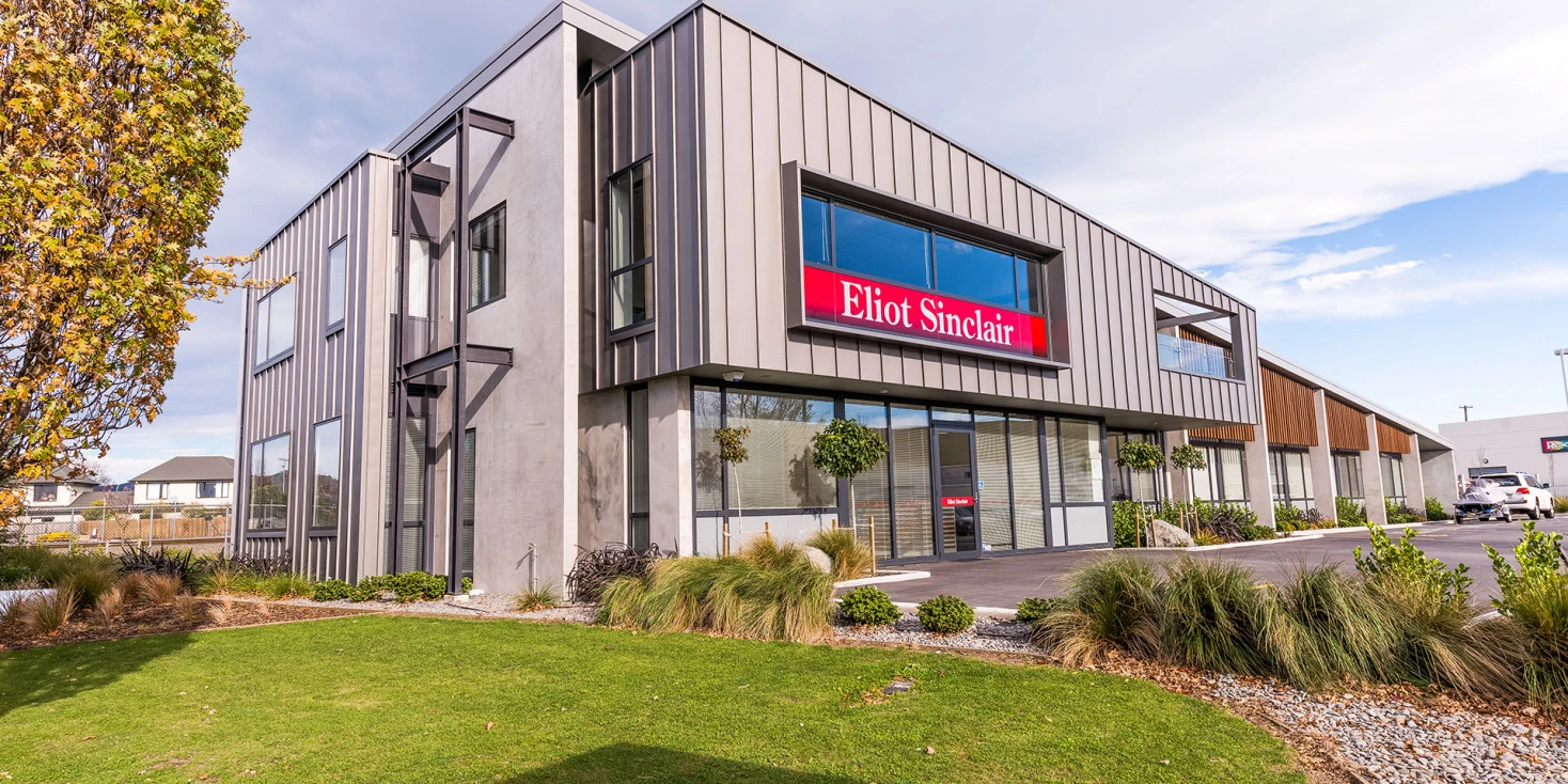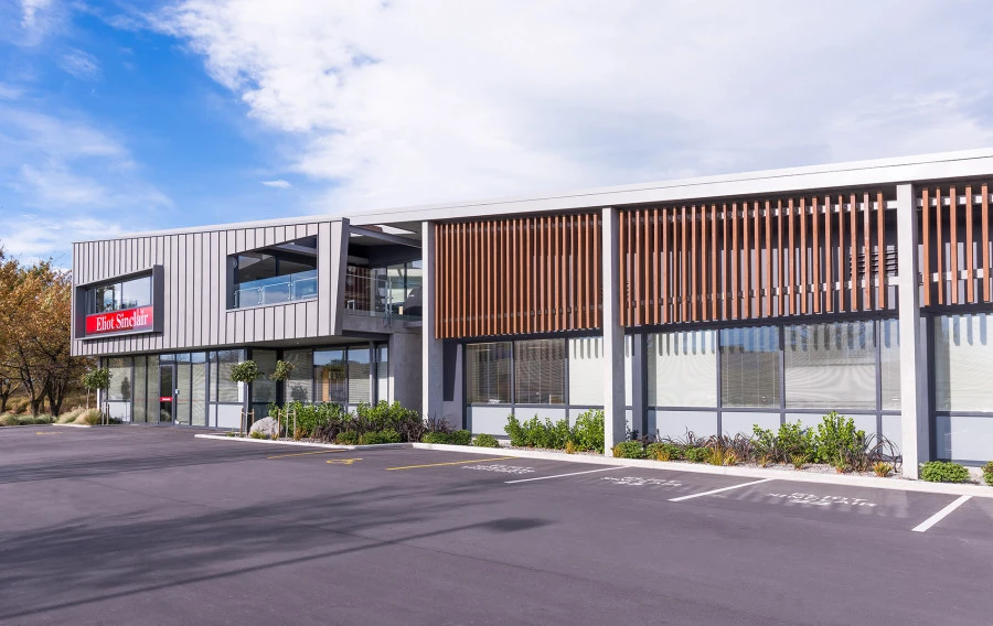 The Eliot Sinclair building, opened in 2013, adopts a striking pose at the end of Troup Drive in Addington.